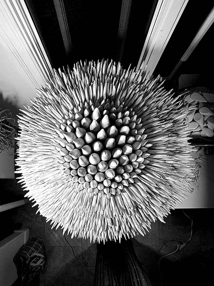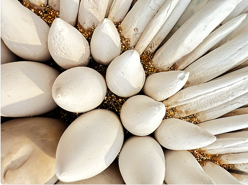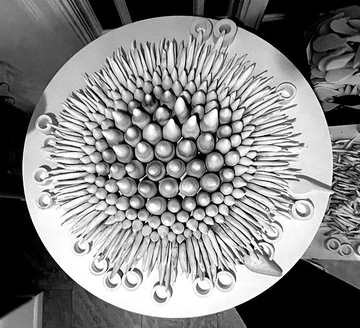So one day I stopped at my magnolia and gave her a light pruning - collecting an assortment of 25 or so buds in various stages of bloom, to bring home to study. Lots of silicone molds and hundreds upon hundreds of plaster casts later, assembled concentrically by order of maturity, Magnolia Anthesis 01 was born. “Anthesis” means the flowering period of a plant over time, from the opening of the flower bud to the state of full bloom. This art piece might look like it’s in full bloom but the actual elements themselves, the buds, have yet to flower. And I guess this is how I see the mother, the grandmother, the feminine yin… a thing in the process of blooming, always shifting, changing, growing, evolving, thru life’s stages, becoming endlessly fuller, stronger, more robust. So with that, I give you momma Magnolia Anthesis 01…