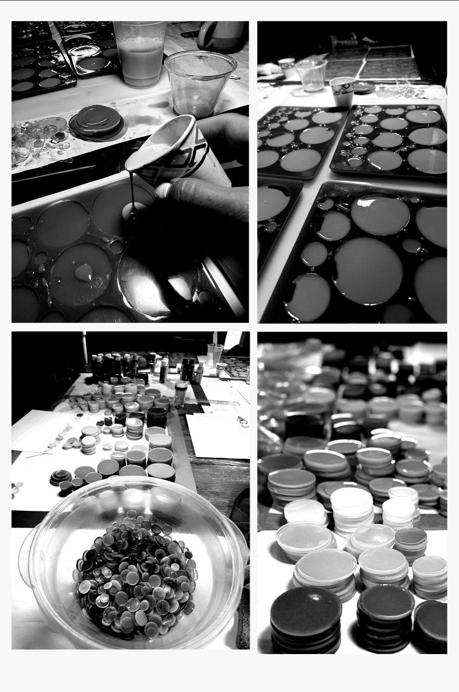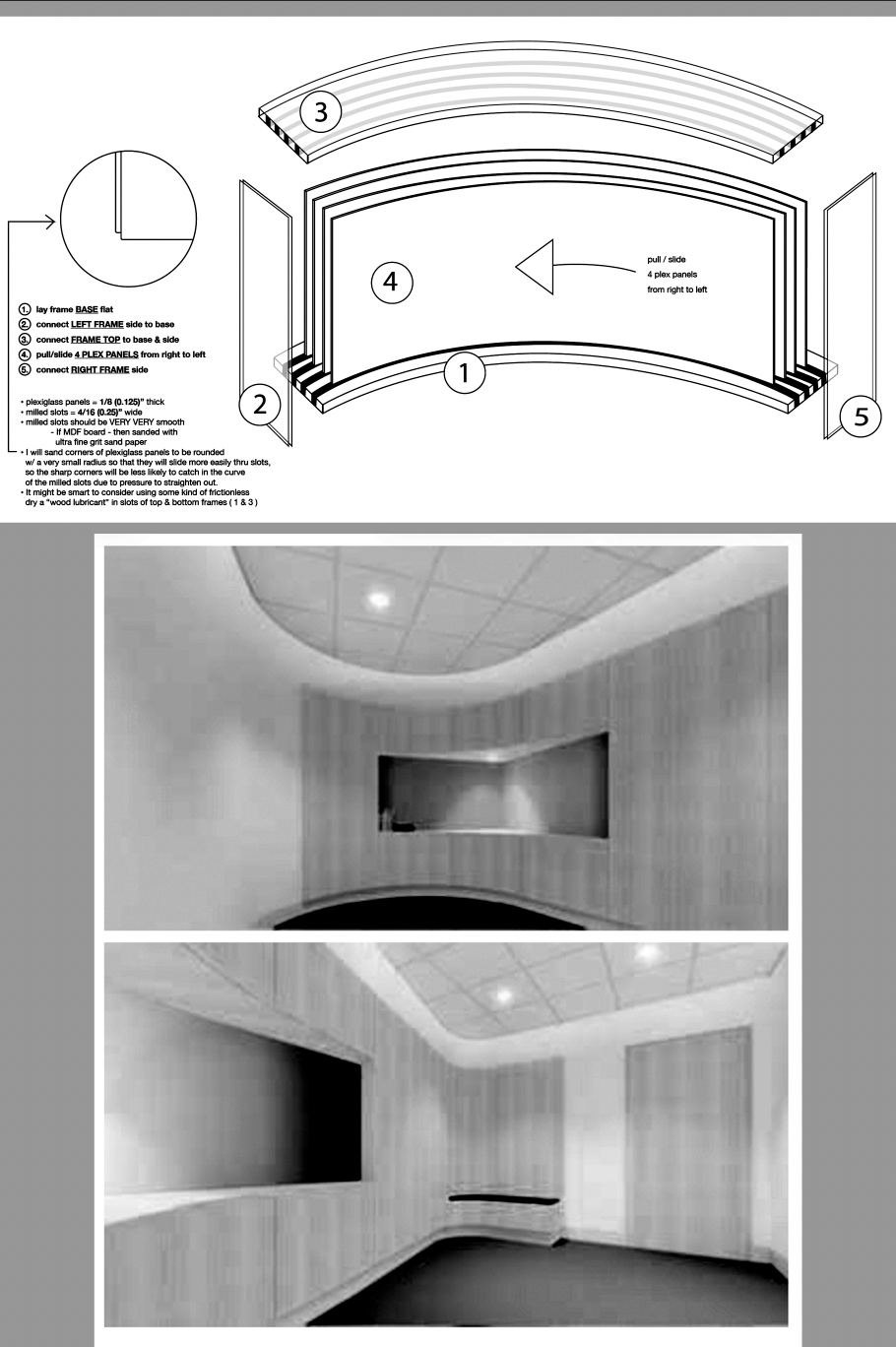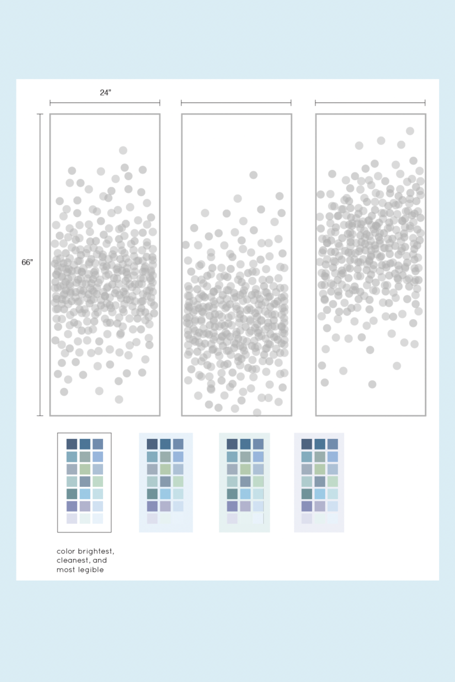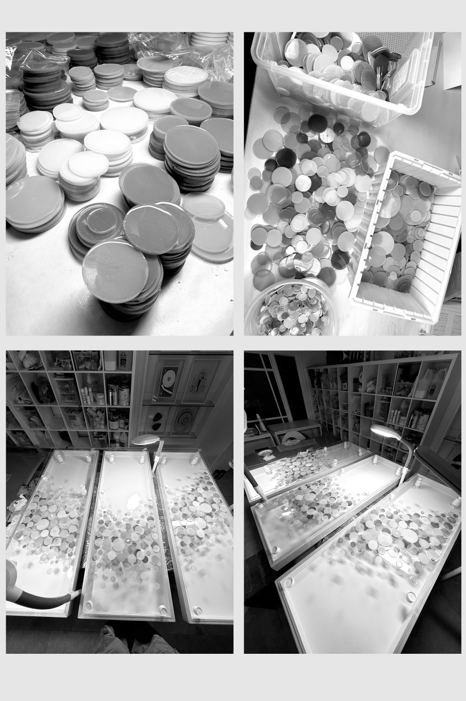 My proposal was to create thousands of marine-hued resin discs layered upon 4 long and flexible 1/8th” plexiglass panels to stretch from end to end of the nook in one smooth and gentle curve. The piece was to sort of “float” in a custom designed “cleat” (avoiding the barriers and limitations of a fixed frame) while being backlit with a custom designed linear LED band hidden from below.
